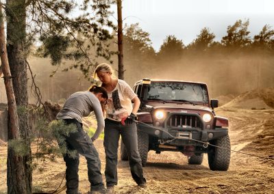 Tagsüber wird den Teilnehmerinnen ein bis ins Detail ausgearbeitetes Gelände-Fahrtraining geboten: Vom gekonnten Überwinden verschiedener Geländesituationen wie Sand, Morast, Steigungen, Schrägfahrten bis hin zum Bergen eines festgefahrenen Geländewagens. Zahlreiche Tipps und Tricks werden vermittelt. Offroad-Spezialgeräte wie Seilwinden, Greifzüge, Hi-Lifts, Sandbleche, Gleitschutzketten, normale und kinetische Bergegurte etc. werden erklärt und deren Anwendung im praktischen Einsatz veranschaulicht.